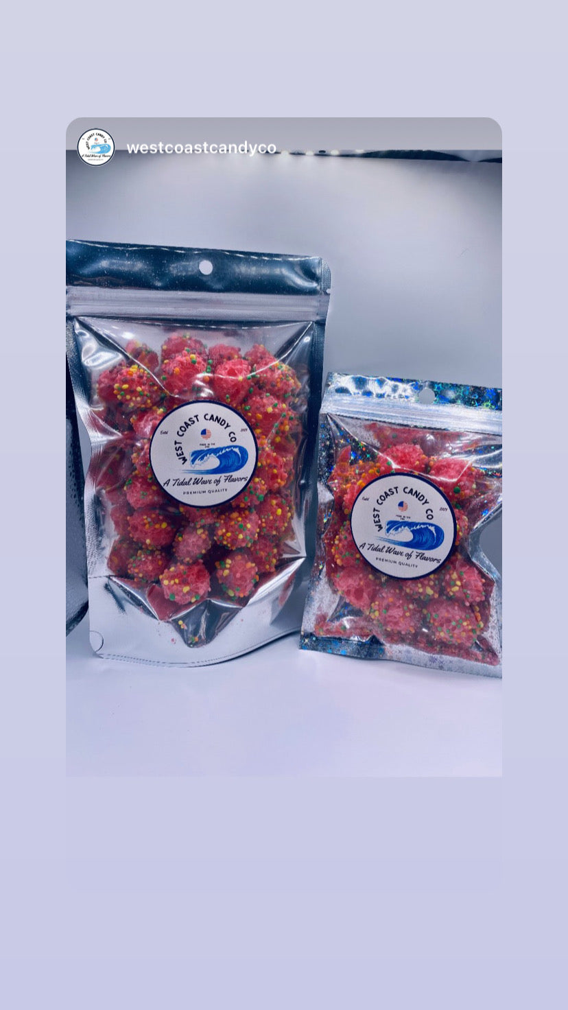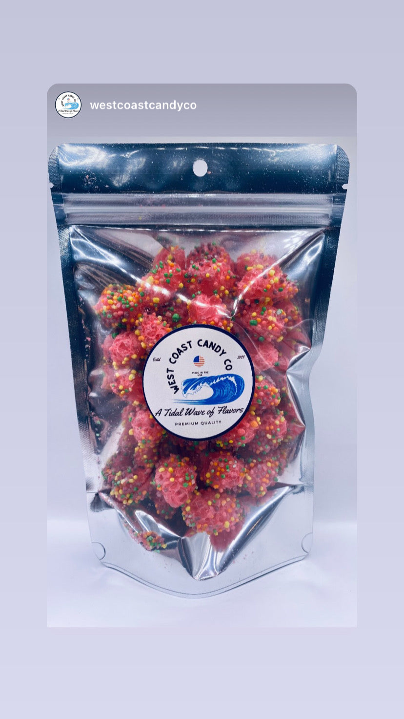 Coral Reef Clusters! So fluffy, fun & crunchy! A poppable cluster, packed with tangy, crunchy bits! A candy so tasty, there aren’t even words!